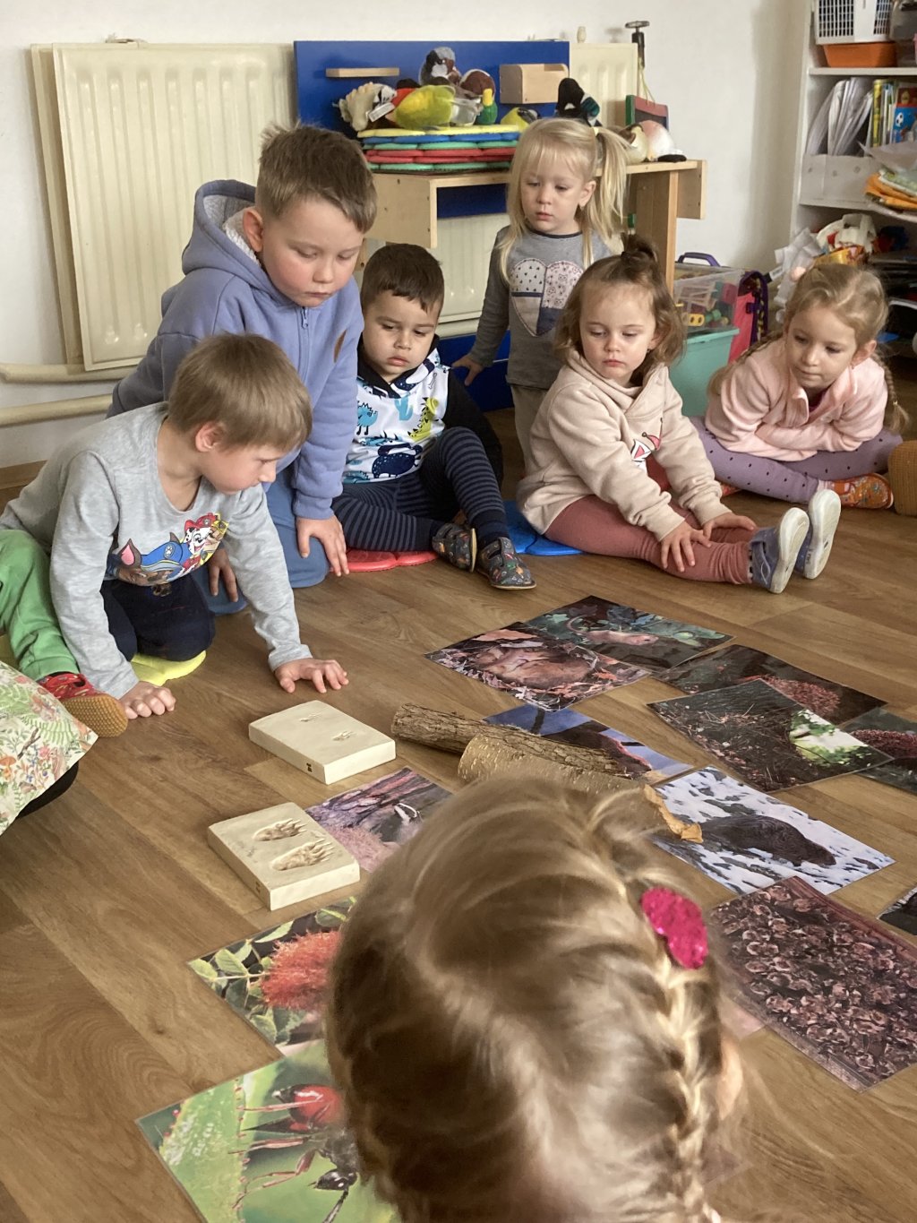 obrázky zvířátek a jejich obydlí přes zimu, které si děti rozebraly a postupně si