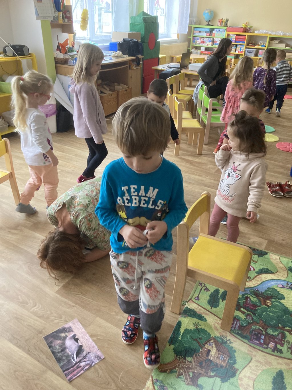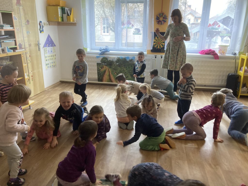 vědomosti, zahájily pohybovou hru „Na jezevce“ (děti procházely po třídě potichu