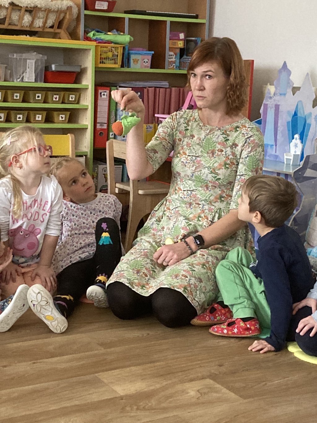 vytáhla krásného pleteného motýla, o kterém se děti dozvěděly, jak funguje jeho