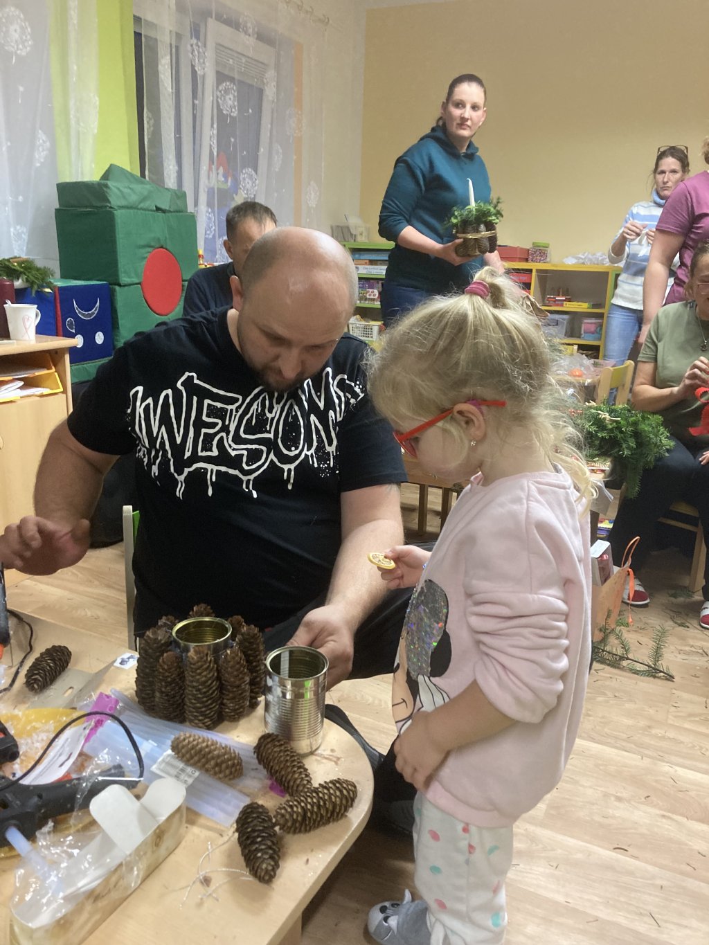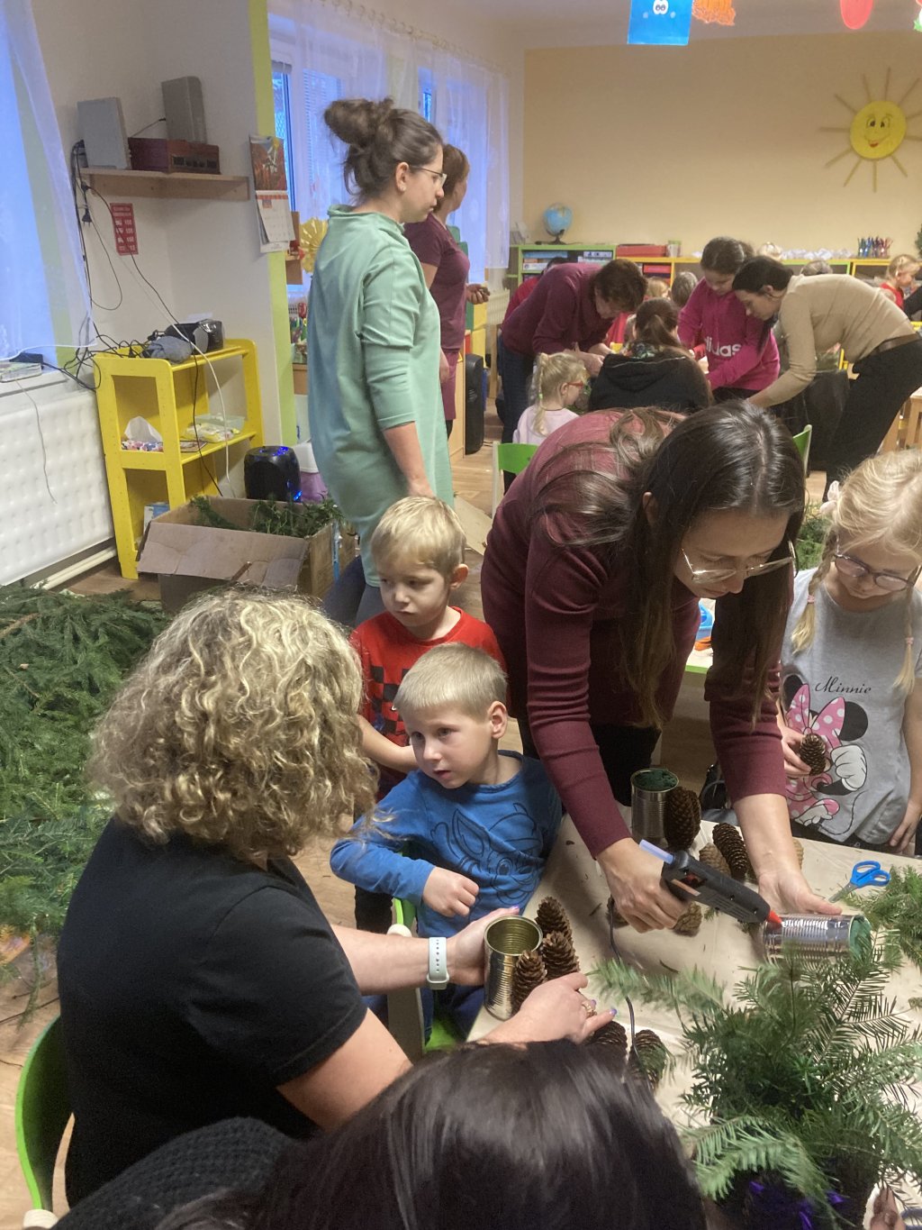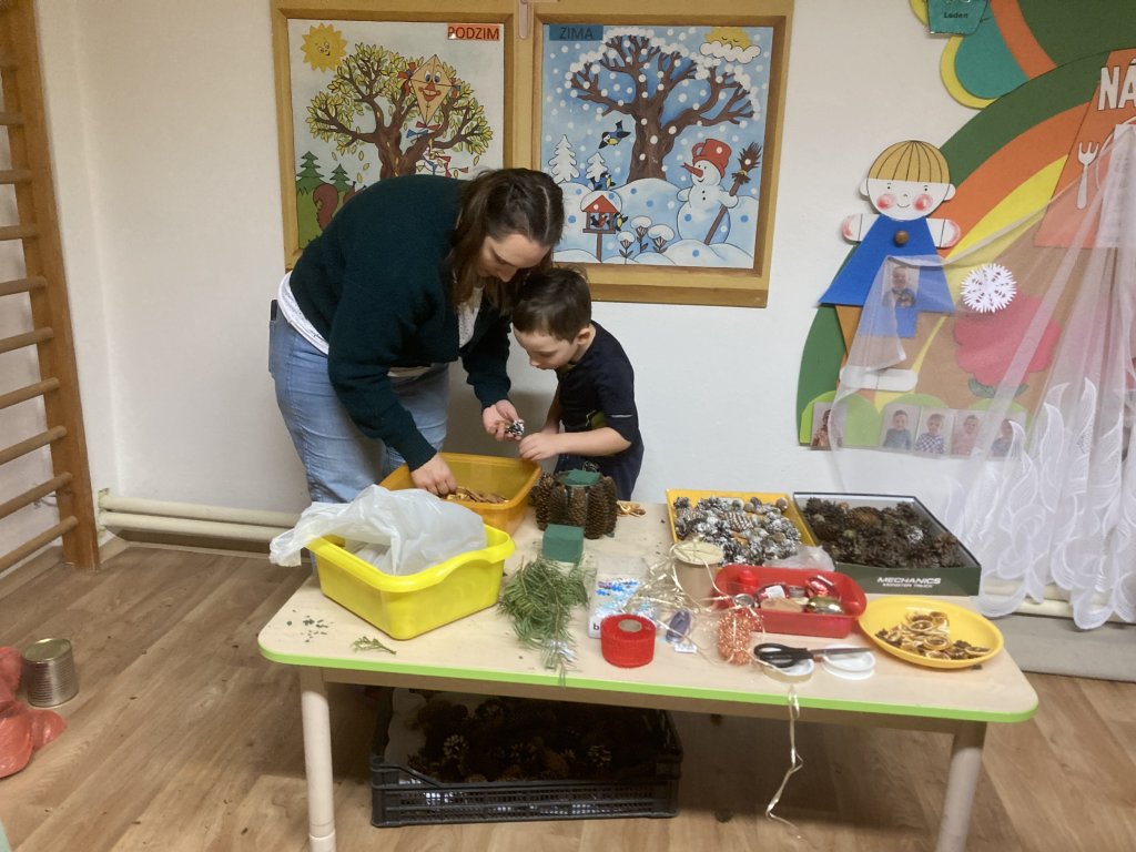 Adventní čas jsme v naší školce zahájili ve čtvrtek 27. listopadu odpoledne společně s rodiči na „Adventních dílničkách“. Děti si spolu se svými rodiči vyrobily krásné svícny z šišek, větviček a ozdob. Někteří rodiče si vyráběli i adventní věnce.
