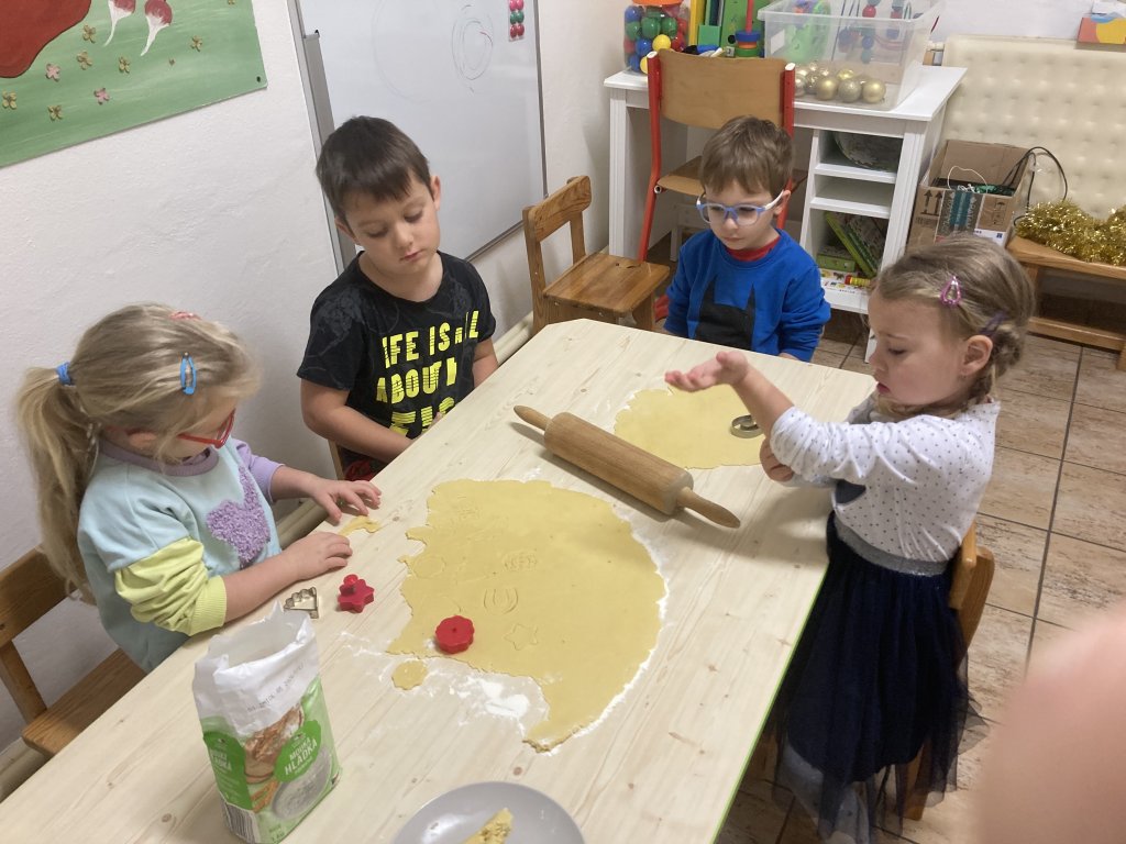 V pondělí se školkou rozvonělo cukroví - děti pomáhaly s pečením vánočního cukroví a dozvěděly se, jak se peče a co je vše k tomu potřeba. Ve středu se pustily do tvoření dárečků pro rodiče, aby jim udělaly radost na „Vánoční besídce“.