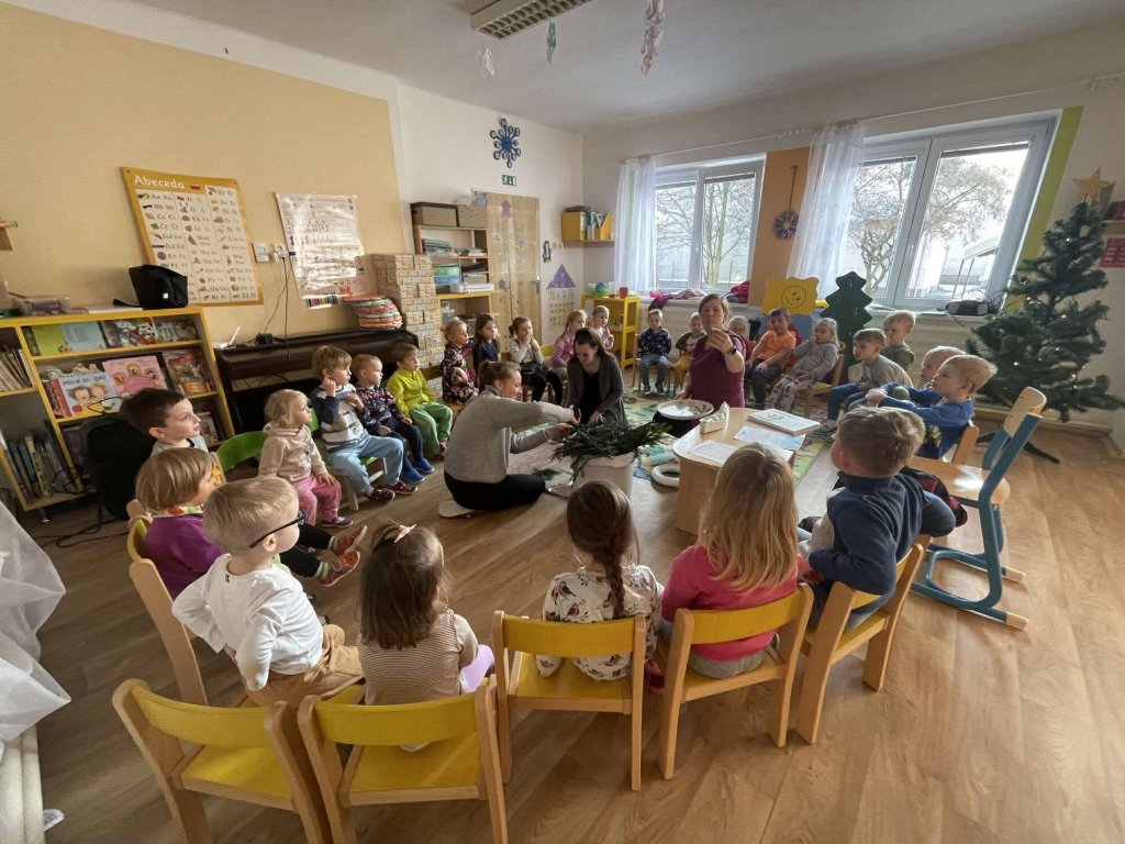 Ve čtvrtek jsme dětem představily tradici sv. Barbory. Děti se seznámily s legendou a poté si šly během vycházky ustřihnout „Barborku“ - větvičku zlatého deště. Tu si odnesly domů a měly za úkol sledovat, zda do Vánoc rozkvete.