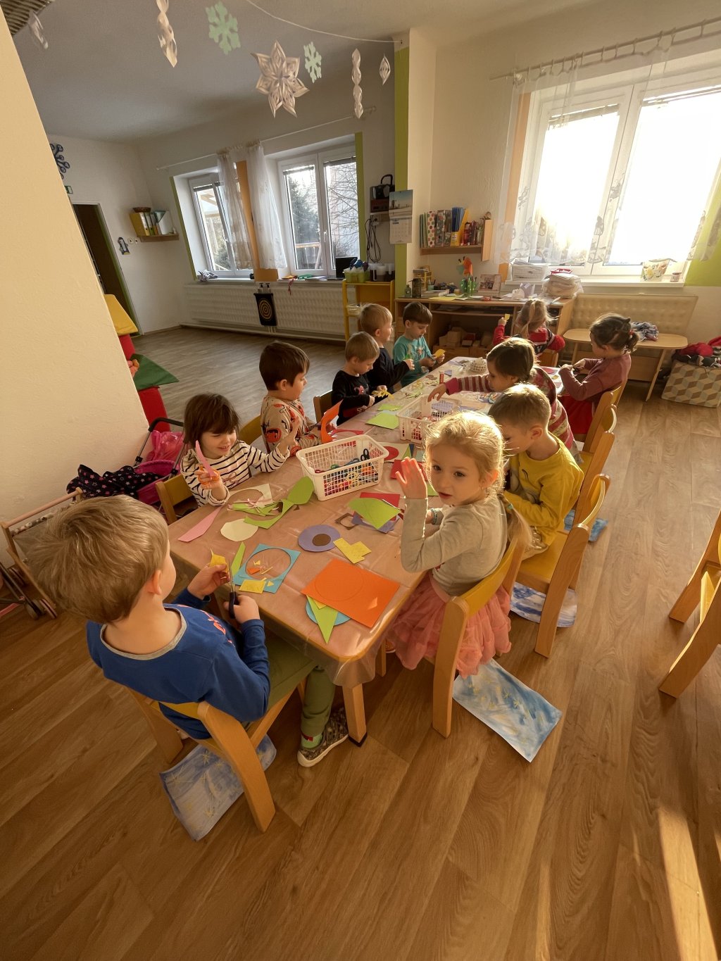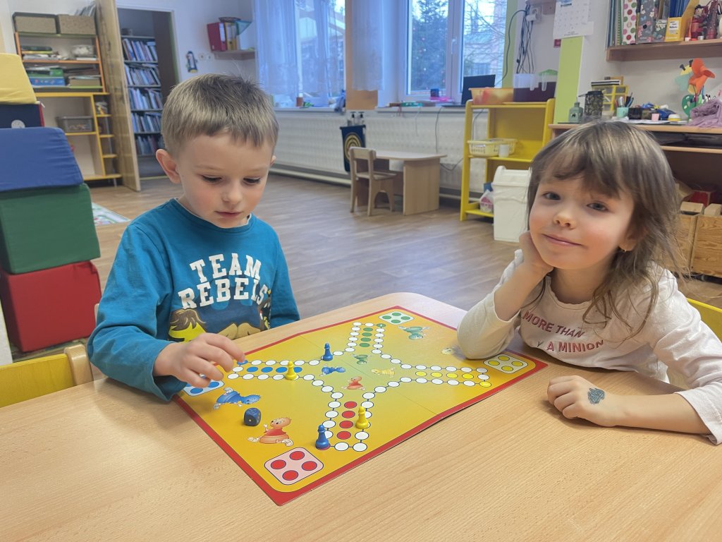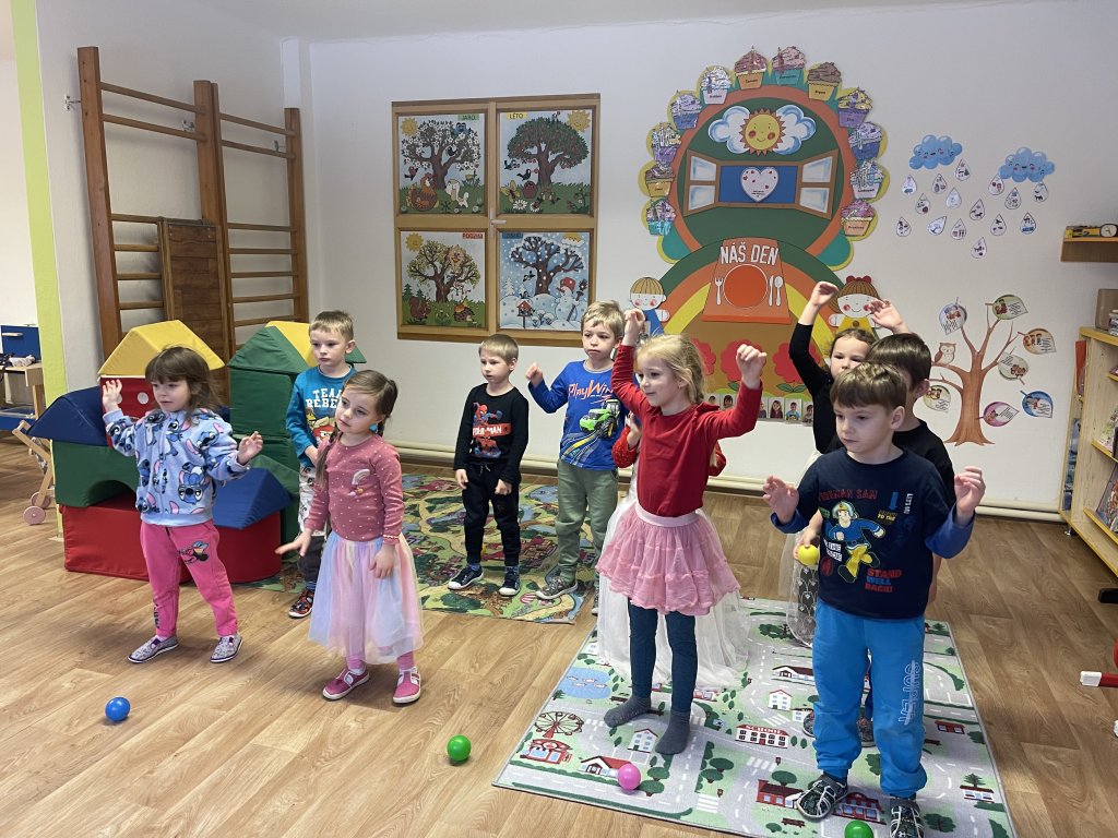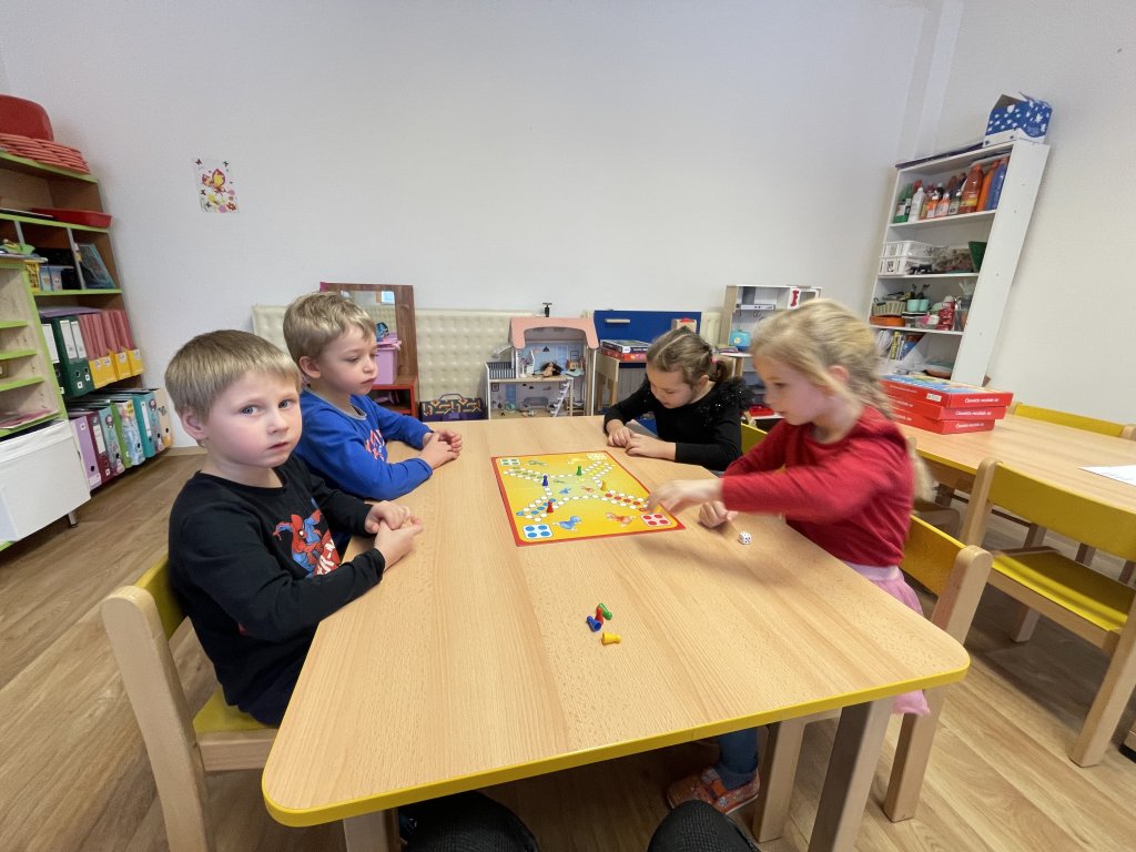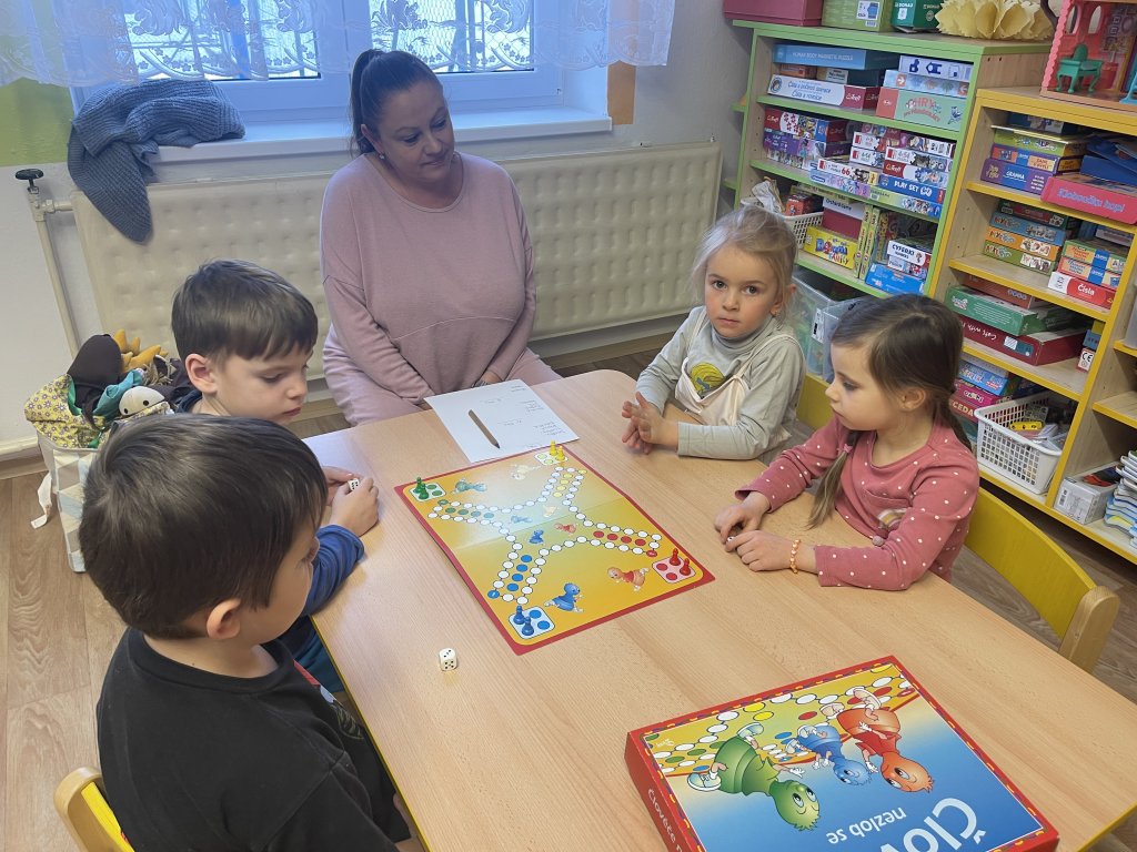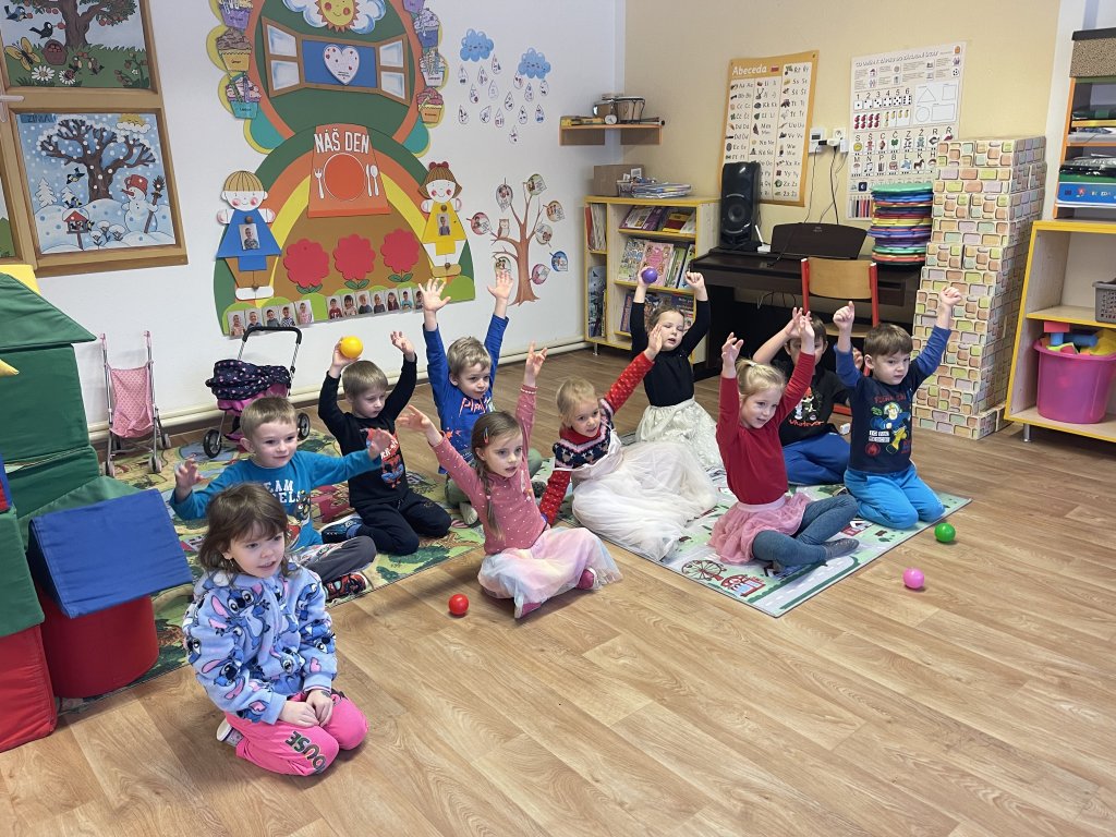 V pondělí děti zhlédly příběh a pohádku o Třech králích. Děti vyprávěly, co zažily se svými blízkými o vánočních svátcích. Společně jsme si zazpívaly píseň Tři králové, naučily se báseň Leden a seznámily se s básní o králích. V úterý na nás čekalo proudové cvičení, které si děti užily. Další den následovala tradiční dramatizace, kterou  zahrály děti z Oranžových sluníček. A měly i diváky, mladší kamarády. Ve čtvrtek děti tvořily – stříhaly, lepily, procvičovaly geometrické tvary. A poslední pracovní den zakončily stolní hrou „Člověče, nezlob se!“. Hra byla pro všechny děti poučná a plná emocí. Bylo úžasné, i když děti prohrály, neuronily ani slzu. I já hrála a prohrála. Během celého týdne děti cvičily, tancovaly, procvičovaly, opakovaly, užily si mnoho zábavy a legrace.  A protože nám přálo i počasí, děti měly možnost se seznámit s vlastnostmi zimy – sněžení, stopy, zmrzlé louže, klouzání po ledu. Týden se povedl a děti mají opět možnost své vědomosti a dovednosti předávat dál. Naučily se mnoho nového.