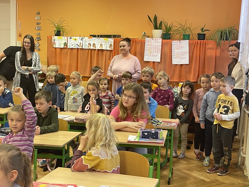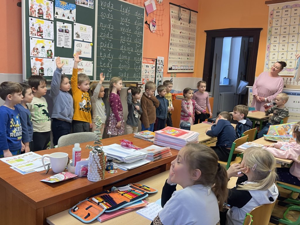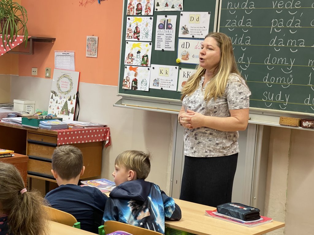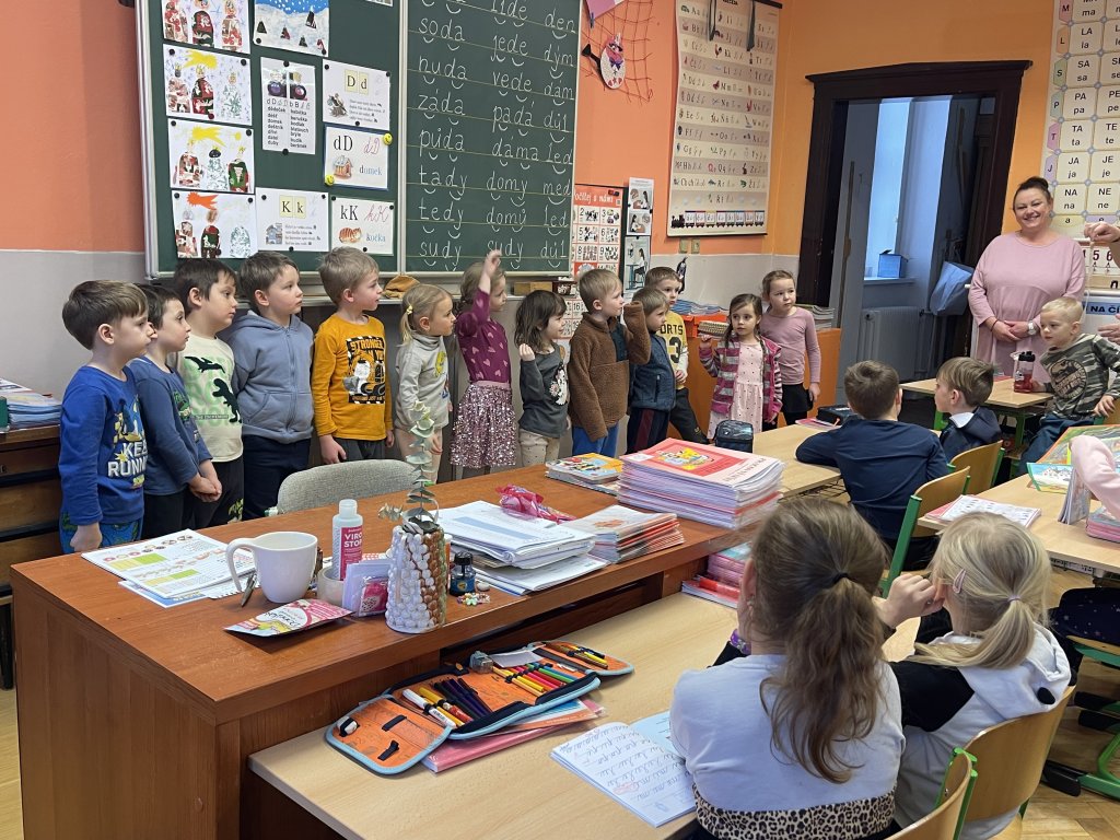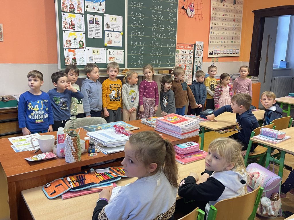 Poté je paní učitelka Mgr. Drahomíra Frydrychová pozvala do první třídy. Děti