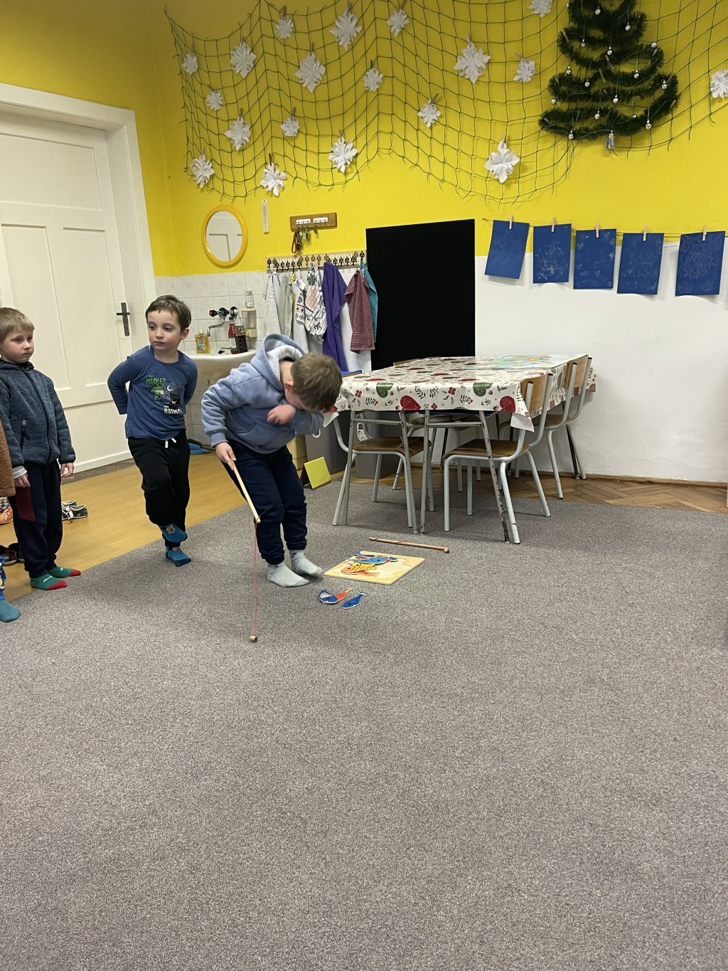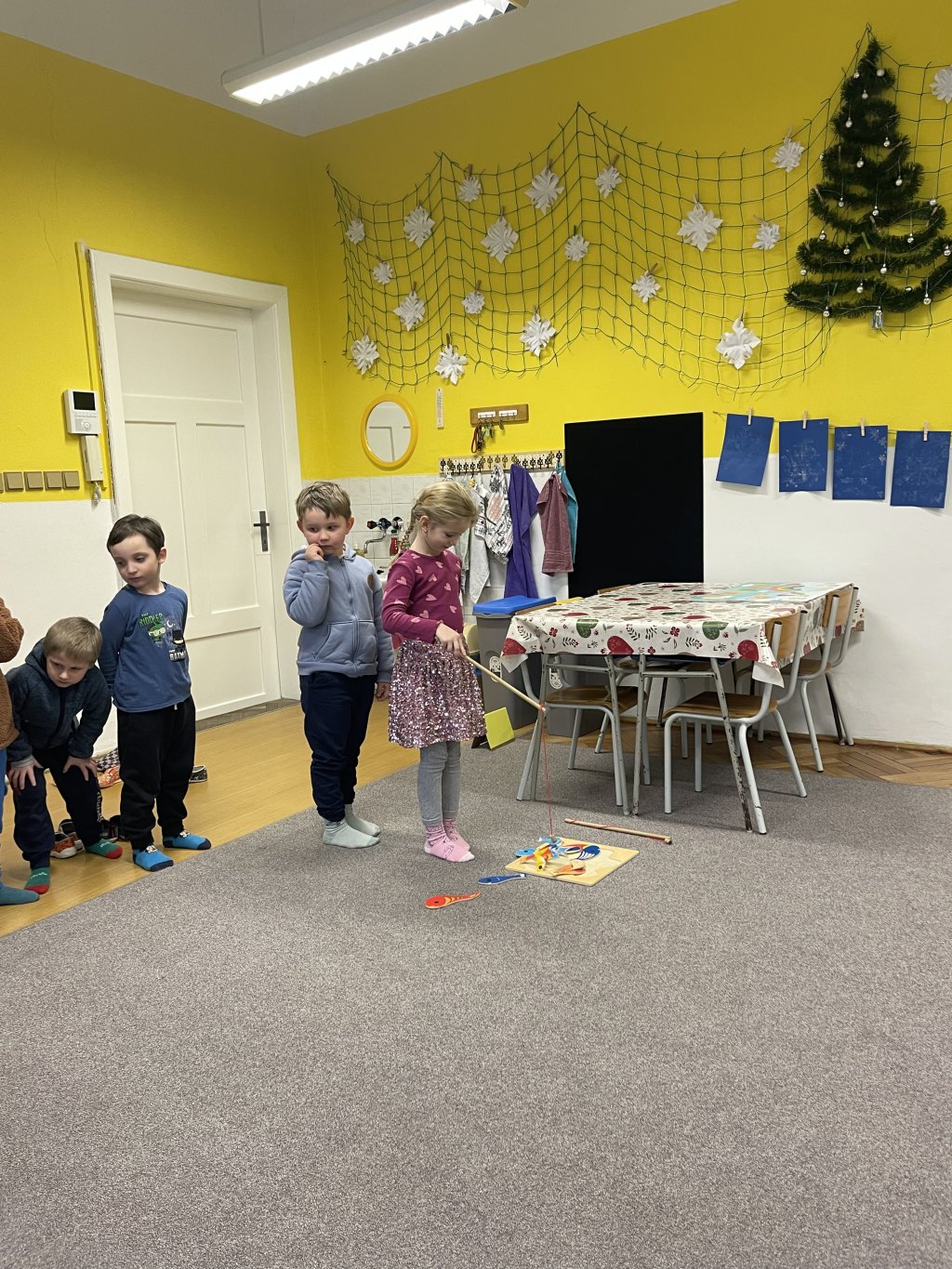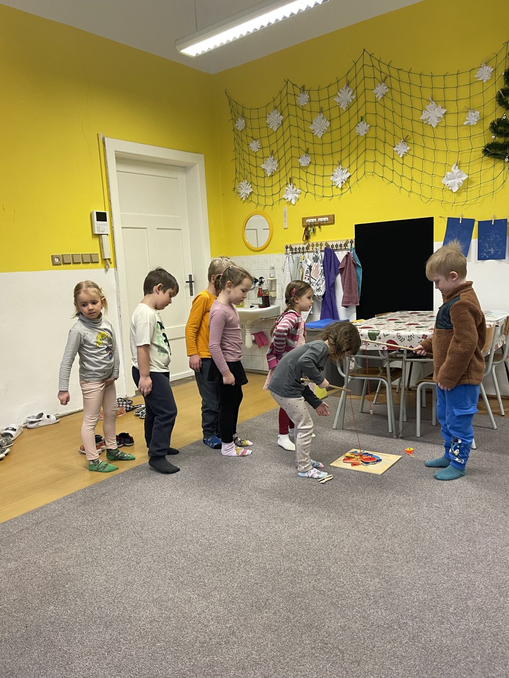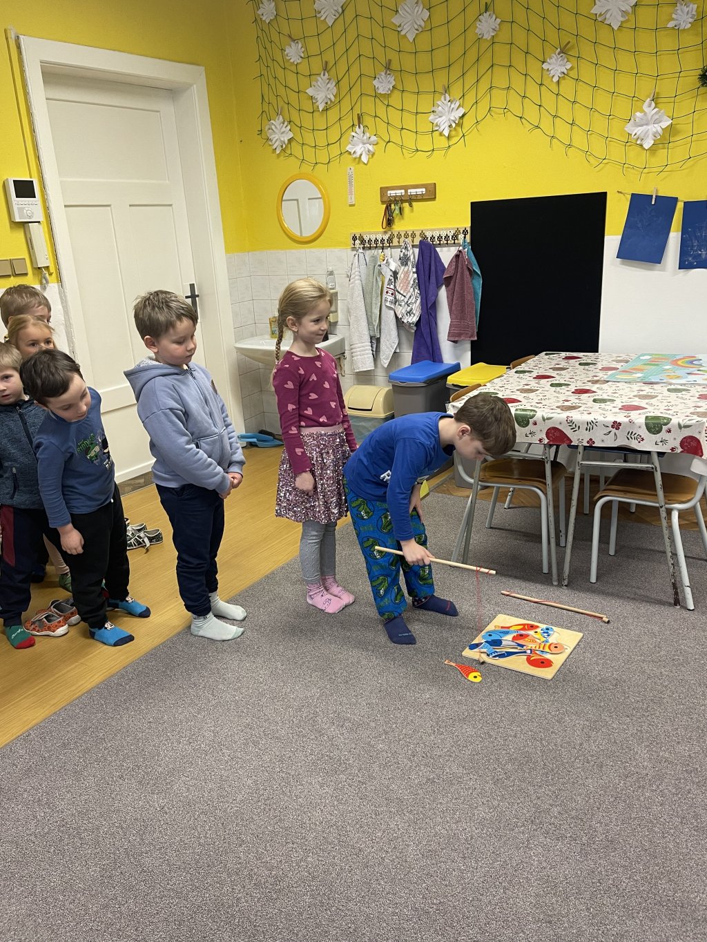 Děti si prohlédly šatny, kde se přezuly a odložily své věci.