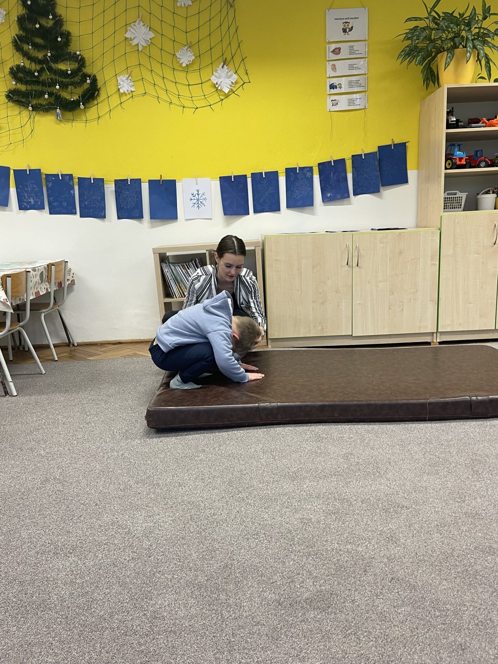 knížky s krásnými známkami a předškoláci si vyzkoušeli i sezení
