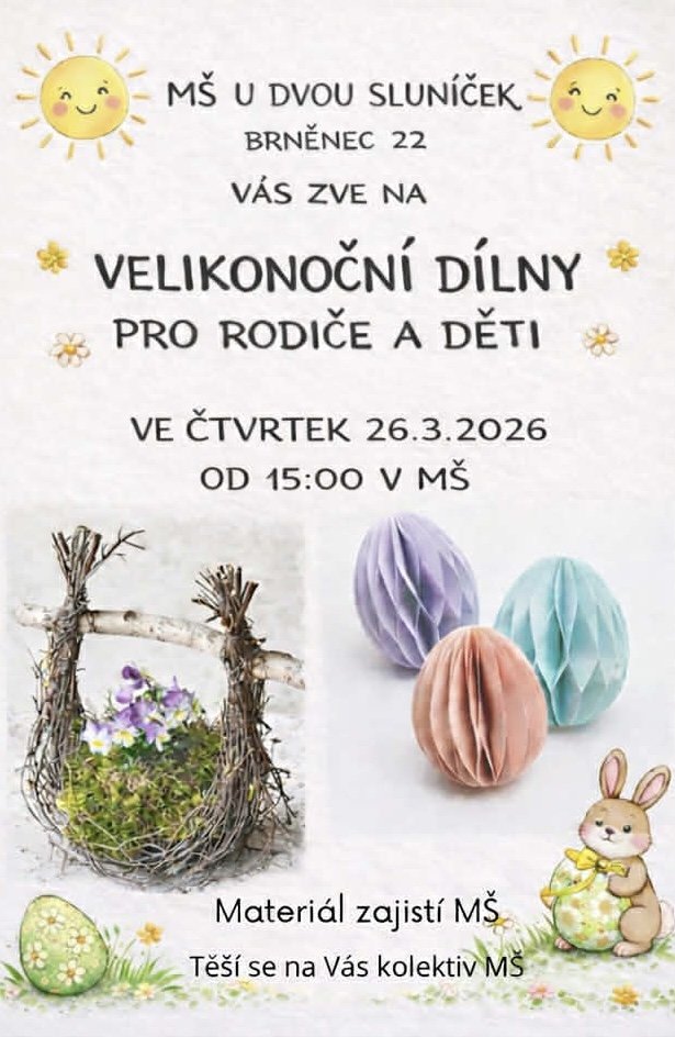 Velikonoční dílny se uskuteční ve čtvrtek 26. 3. 2026 od 15:00 hod.