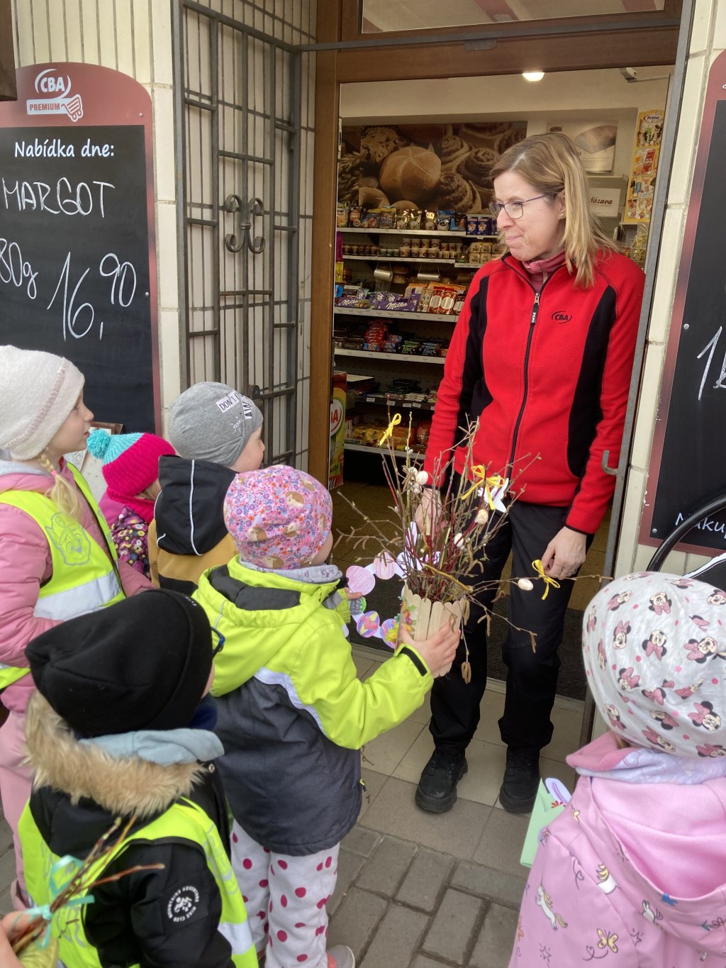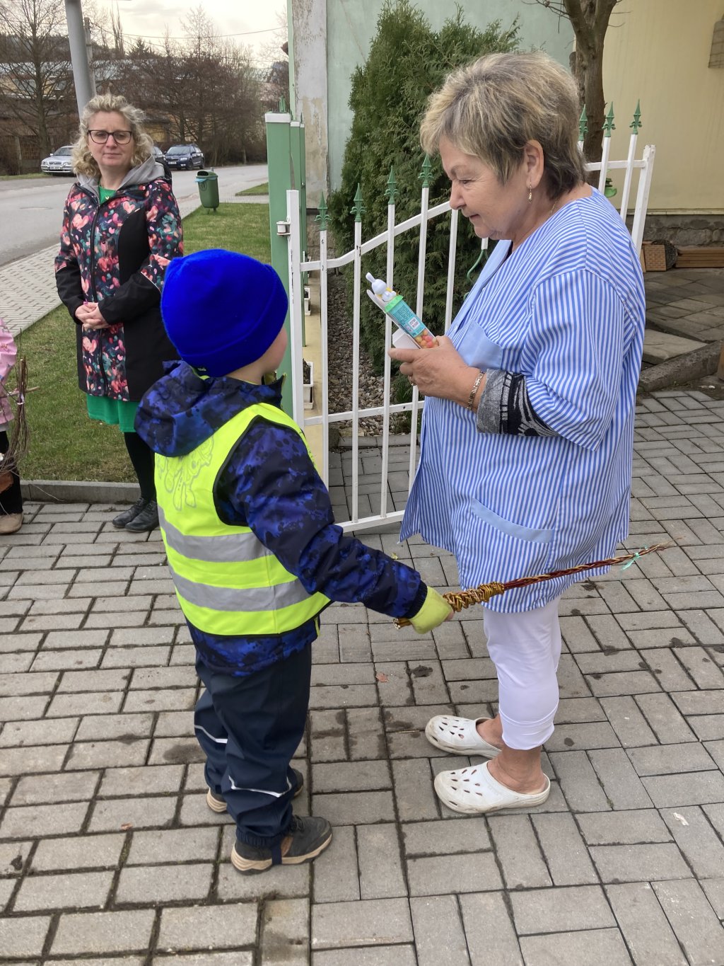 Samotné „Velikonoční vinšování“ proběhlo ve čtvrtek 2. 4. 2026. Děti vyrazily popřát krásné Velikonoce na různá místa – obchod u Niederlů, zdravotnické středisko, místní občany v bytovce, bývalou paní kuchařku, drogerii a nakonec také pana starostu. Při vinšování děti zazpívaly písničku o jaru a kluci symbolicky s říkankou „vyšlehali“ babičky, aby byly zdravé.
