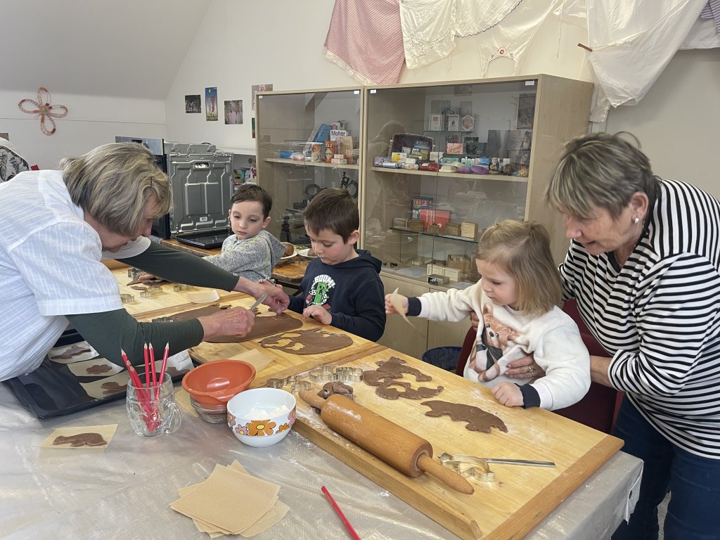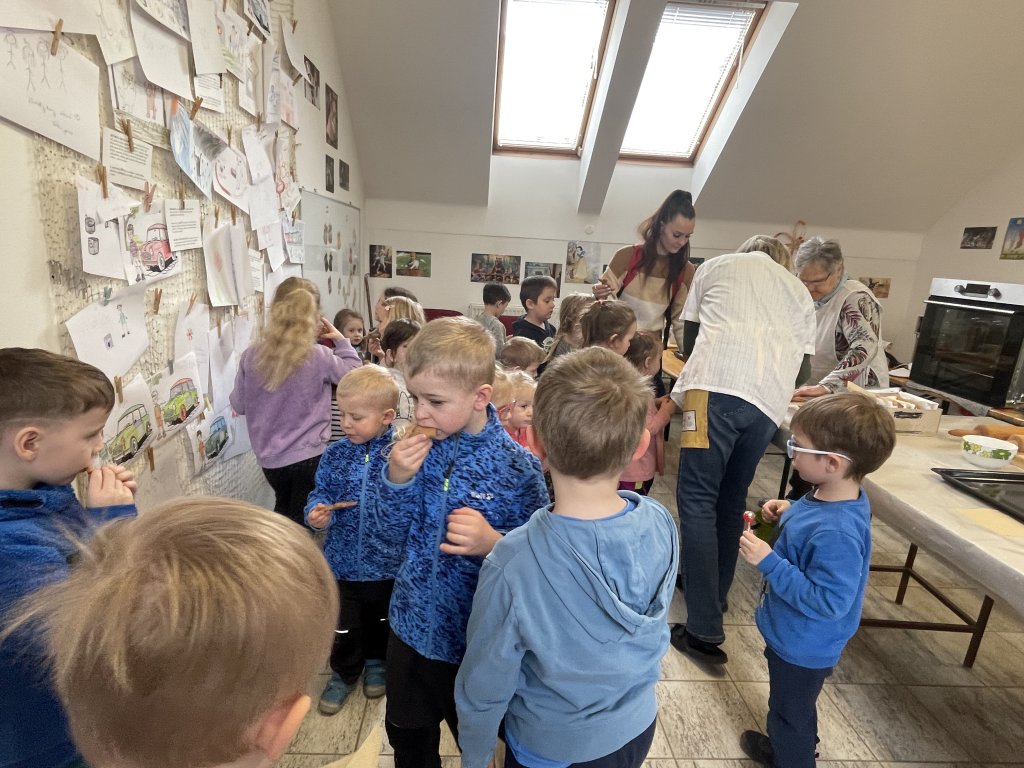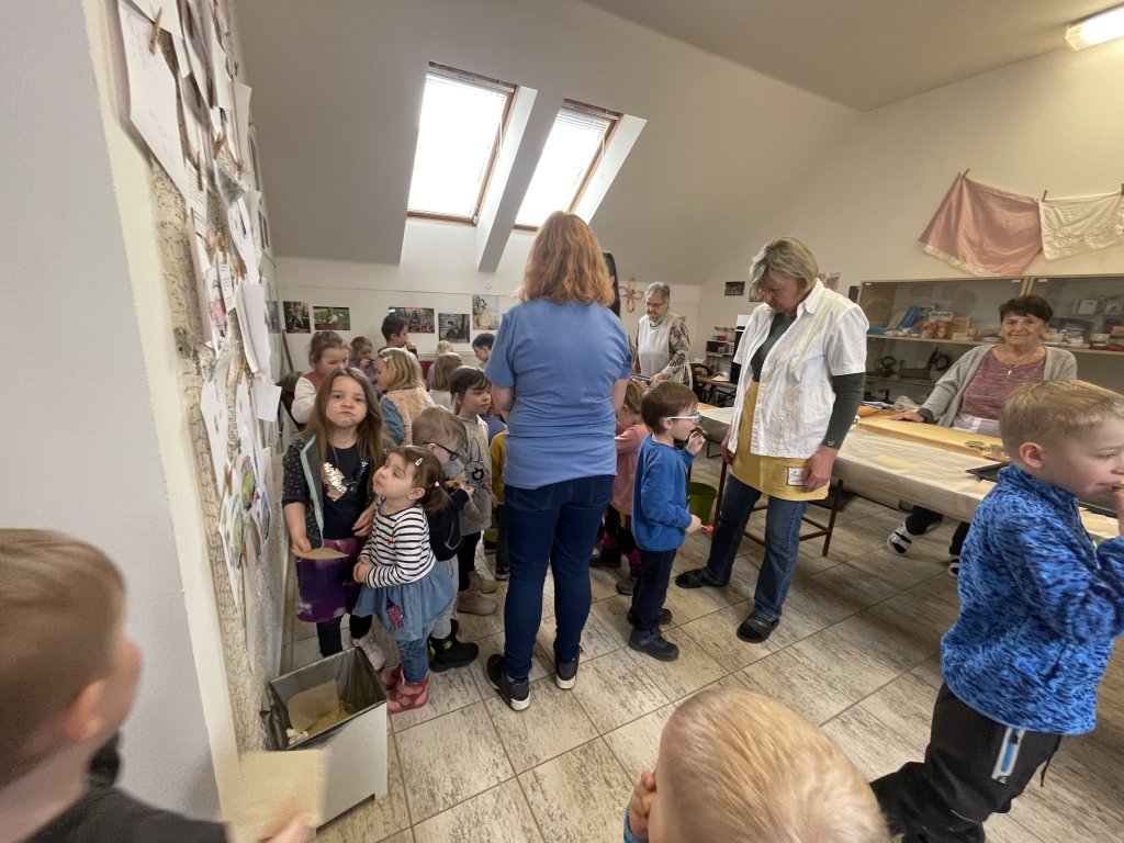 Na začátku výstavy nás zaujala výroba a pletení pomlázek. To ocenili zejména chlapci, ale i holčičky se přiučily mnohému novému. Dále si děti mohly vykreslit výřezy z překližky dle vlastního výběru a fantazie, vyrobit slepičku nebo kohoutka z papíru. Někteří využili možnost výroby velikonočního přáníčka pro své blízké. Také nechybělo velikonoční pečení perníčků, které si děti užily.